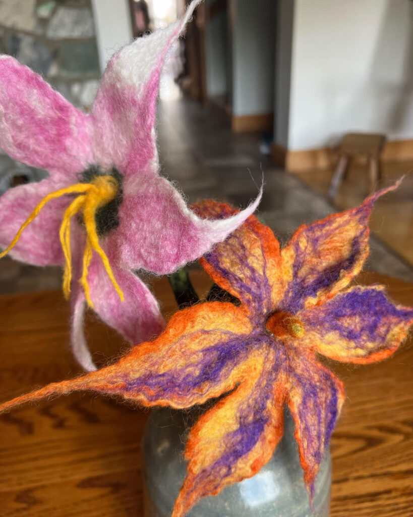 Sept. 9th and 10th: Janet Patterson will be in the window, working on felted flowers for a large installation she is creating.